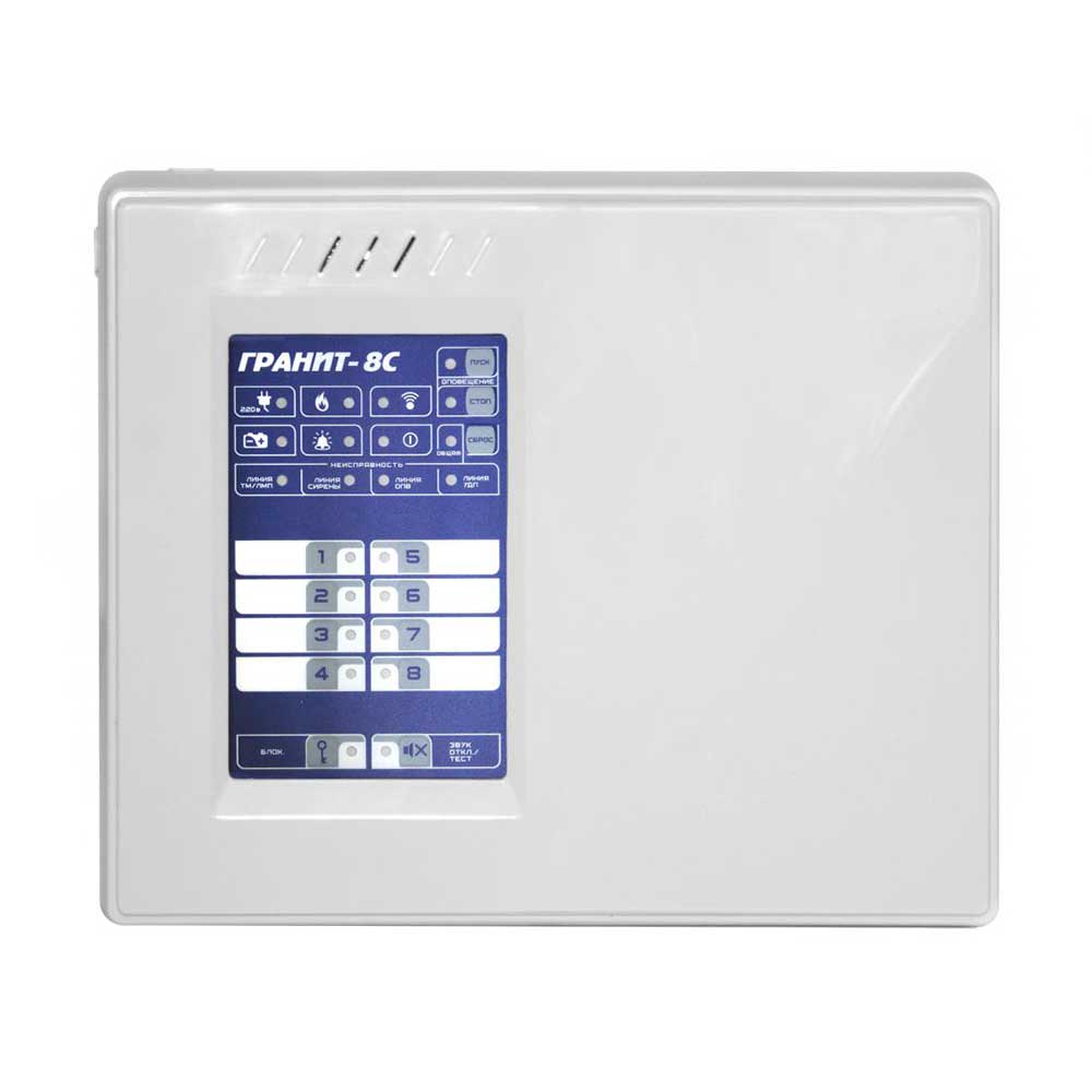 Контрольный прибор «Сибирский Арсенал» «Гранит-8C» рассчитан на восемь шлейфов сигнализации. Укомплектован тремя выходами типа «открытый коллектор» и одним типа «сухие контакты». Оповещает о тревоге и других событиях с помощью световых и звуковых оповещателей, табло «Выход». Поддерживает все алгоритмы работы (А, В и С) согласно свода правил СП 484.1311500.2020 «Системы противопожарной защиты. Системы пожарной сигнализации и автоматизация систем противопожарной защиты. Нормы и правила проектирования» (01.03.2021 г). Оборудован входами для подключения внешнего источника питания, аккумуляторной батареи, дополнительного порта Touch Memory, считывателя «Портал», восьми шлейфов охранной или пожарной сигнализации, устройства дистанционного пуска, коммуникатора (GE, Wi-Fi), microUSB для подключения к ПК, тремя выходами линий реле, выходами питания, сирены, табло, выходами типа открытый коллектор, разъемом соединения платы контроллера и платы источника питания, перемычками настройки, сброса настроек, установки пароля, обновления прошивки, бипером, светодиодными индикаторами питания, состояния, событий, связи.